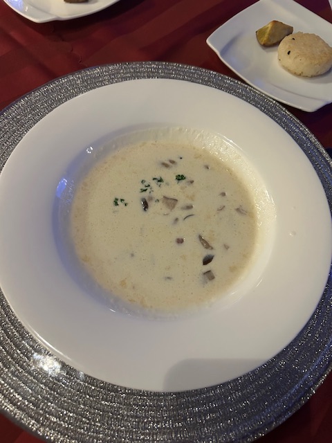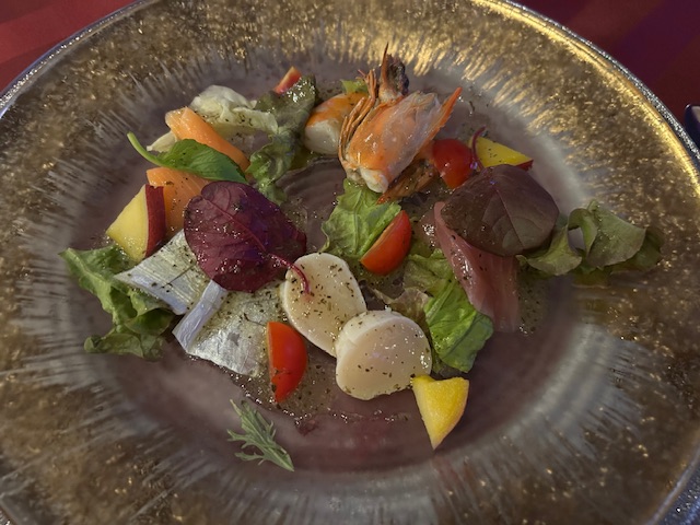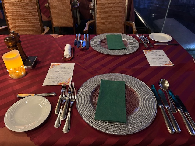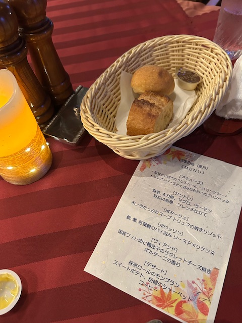 外食。 2025年9月12日 日記 ゴルフ練習場併設の喫茶店で 肉うどんをおごってもらう。 汁まで 完飲。 ◎夜ご飯はフレンチ! 商工会議所内 清交倶楽部。 ピアノの生演奏つき! フィレ肉とかも茄子。 おなかいっぱい。 たべすぎ。 どうやったら、やせることができるだろう。 「施設手伝い〜ナイターサッカー。」 「凪。」