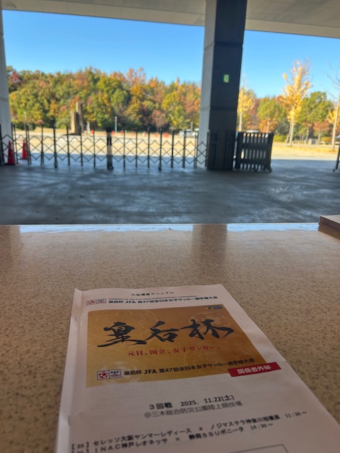 皇后杯。 2025年11月22日 日記 早起き。 三木防災陸上競技場。 運営スタッフ。 どんな活動でも、 どんな組織でも 同じ。 理解度が高く、有効に動くことのできる人は 重要なポジションにつく。 理解度が低く、よくわかっていない人には それなりの仕事が用意されます。 毎年恒例。 私はプログラム販売員です。 午前中 セレッソ対ノジマステラ神奈川 セレッソの勝利! 午後から アイナック神戸対静岡ボニータ。 アイナック神戸が1対0で勝利! 31冊 販売。 最後に 客席のゴミ拾いと、選手ロッカーの掃除。 いい匂いがしました。 「日曜日。」 「初鍋。」