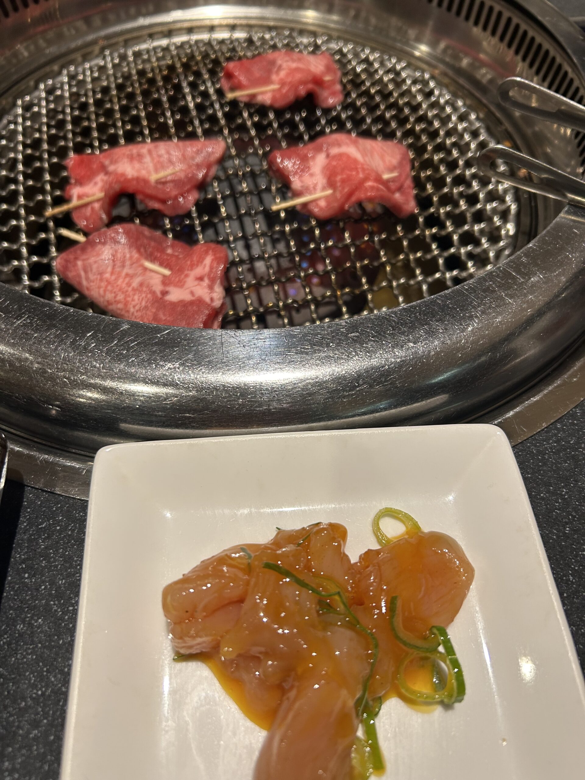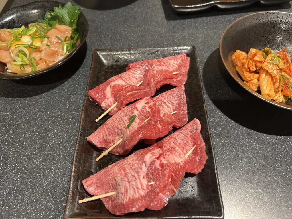 ネギをタンでくるんで、爪楊枝。